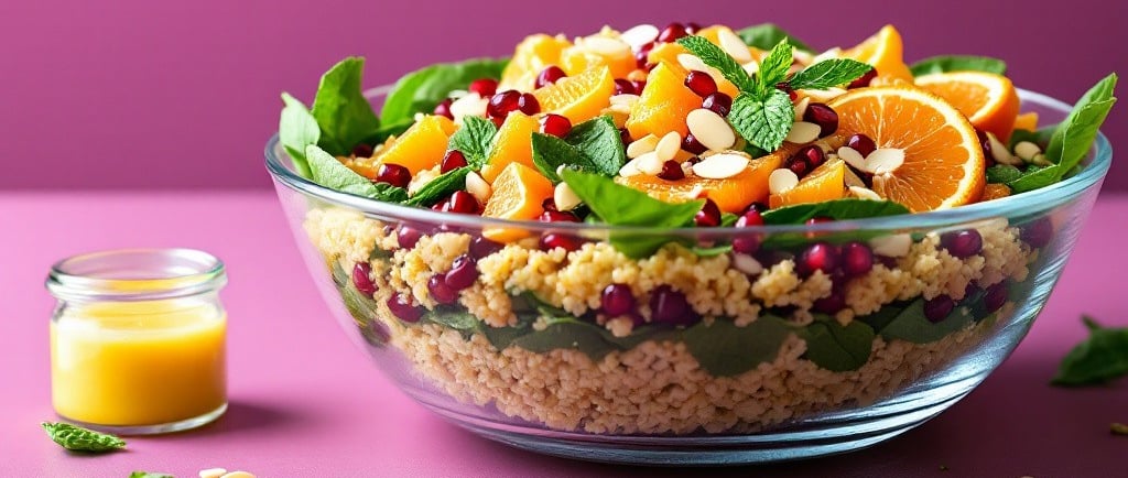 An appetizing and refreshing salad that brings together fluffy quinoa, juicy citrus, crunchy almonds, and fresh mint. Perfect for warm days — colorful, flavorful, and nourishing.