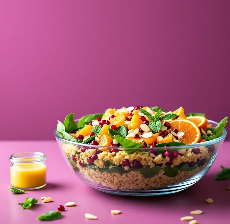 Inspired by modern fusion cuisine, this salad blends South American quinoa with Mediterranean-style citrus. It is a delicious example of how eating well can be joyful, wholesome, and full of life.
