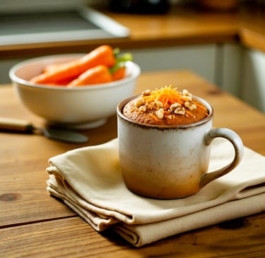 Este “mug cake” o bizcocho en taza captura la esencia cálida y hogareña de un clásico muffin Morning Glory; con zanahoria dulce, especias acogedoras, nueces crujientes y un toque cítrico. Transformado en un postre o desayuno rápido, nutritivo y hecho en porción individual. Es una receta que convierte una mañana cualquiera en un momento suave, fragante y lleno de bienestar, ideal para quienes buscan un antojo dulce sin comprometer su equilibrio.