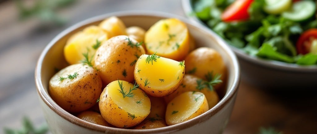 Las papas nuevas y el eneldo son una combinación perfecta, con el delicado y suave sabor de las papas bellamente complementado por el sutil toque ácido del eneldo, lo que da como resultado un plato equilibrado y refrescante que se ha convertido en un clásico adorado en muchas cocinas.