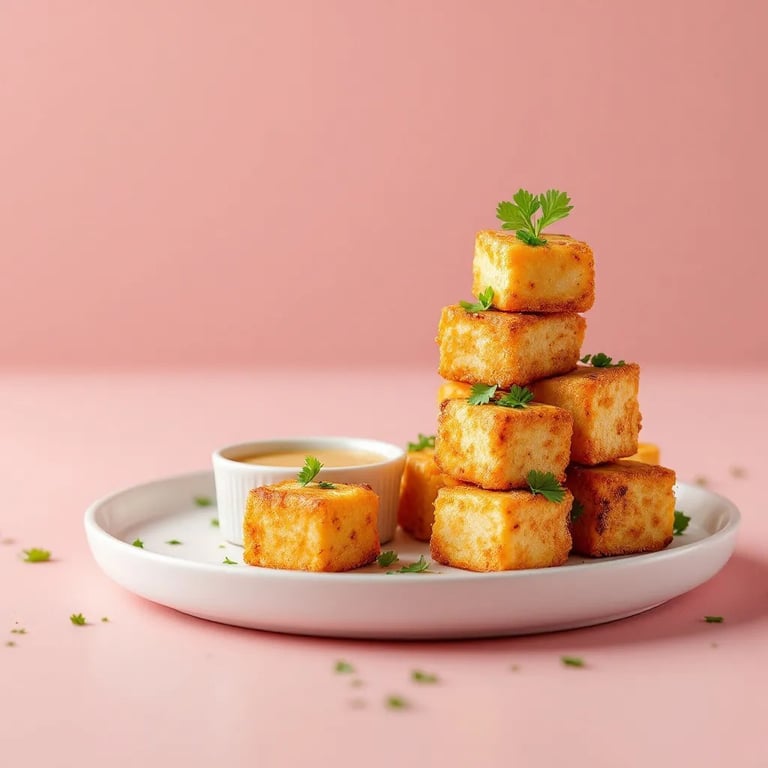 Un tofu dorado y crujiente por fuera, tierno por dentro, con un sabor delicioso 100% vegetal. Perfecto como plato principal, snack o topping para ensaladas y bowls.