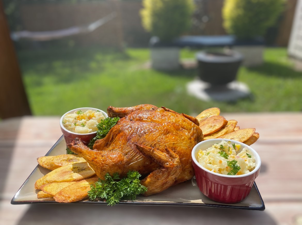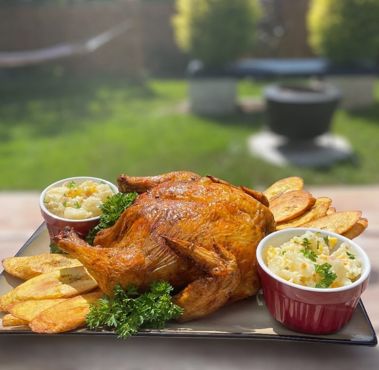 A whole chicken marinated with traditional Puerto Rican flavors like garlic, oregano, and adobo, then roasted to golden perfection. The result: juicy meat and crispy skin with deep, delicious flavor. Perfect for festive family meals.