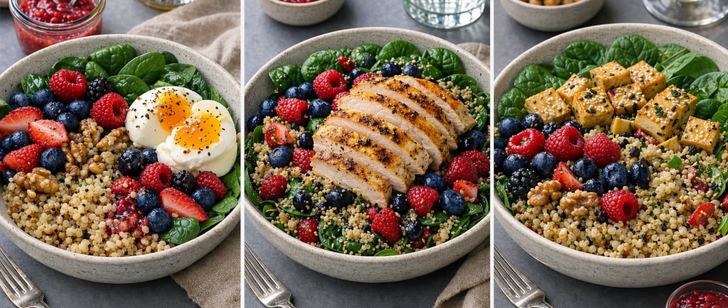Quinoa Berry Power Bowl with Spinach & Raspberry Vinaigrette