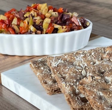 A bold and savory Mediterranean olive spread made with Kalamata and black olives, capers, roasted red pepper, and cold-pressed olive oil. Ideal for spreading on toast, pairing with cheese boards, or adding flavor to pasta, pizza, and more.